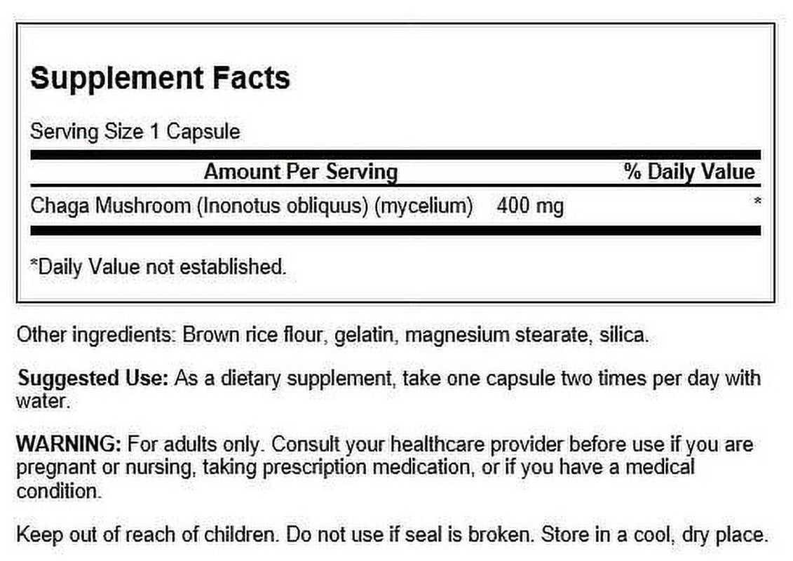 | Product Name | Swanson Full Spectrum Chaga Mushroom 400 mg 60 Capsules |
