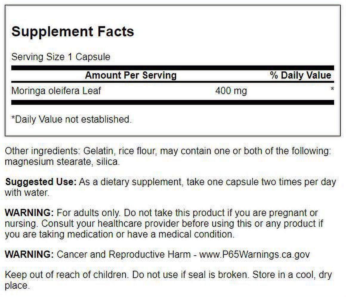 | Product Name | Swanson Full Spectrum Moringa Oleifera 400 mg 60 Caps 4 Pack |