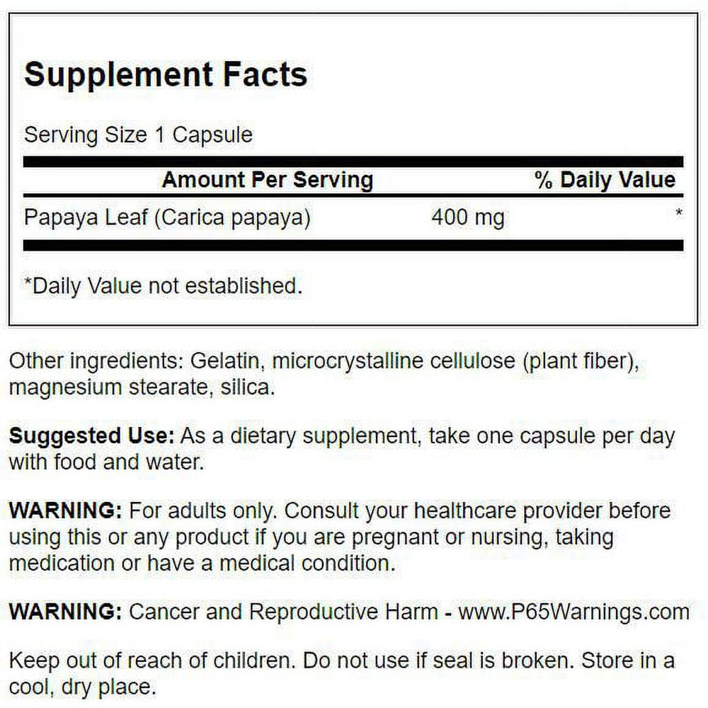 - 400 MG OF POWDERED PAPAYA LEAF - Each Swanson Papaya Leaf Capsule delivers 400 mg of whole, powdered papaya leaf (Carica papaya), which contain a digestive enzyme known as papain, which helps breaks down proteins and carbohydrates for easy digestion.