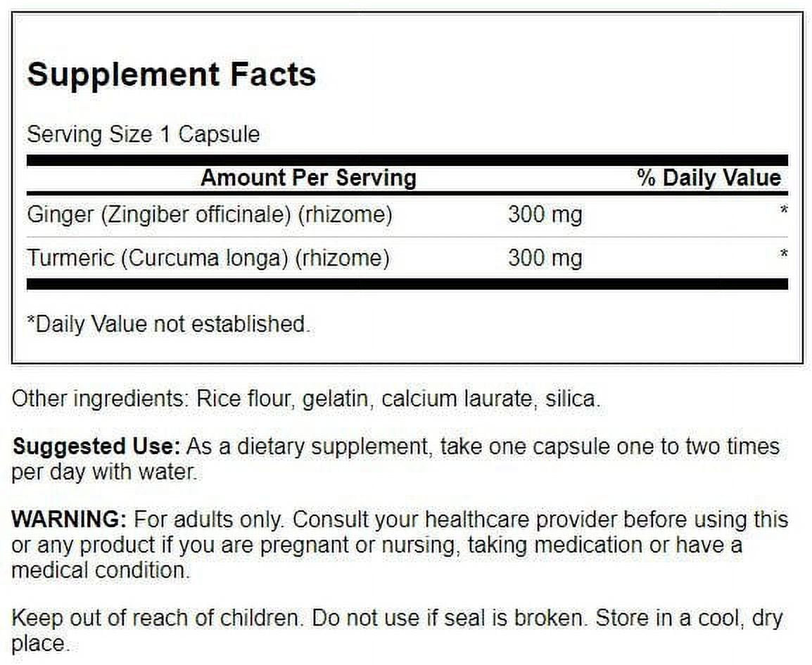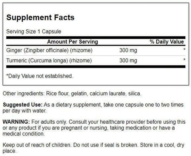 | Product Name | Swanson Ginger and Turmeric 60 Capsules |