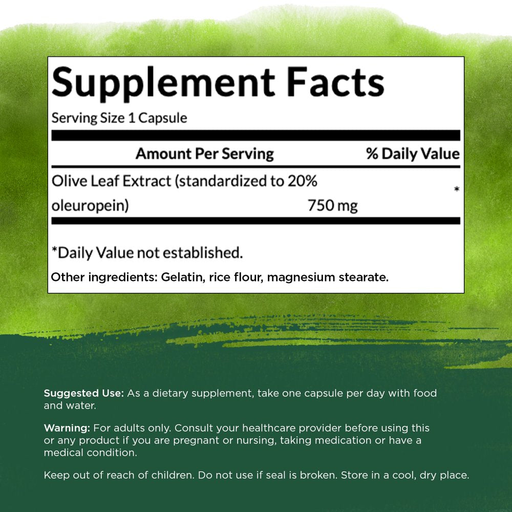 - POWERFUL FORMULA: Sourced from olive tree leaves, each capsule of Swanson's olive leaf extract supplement contains 750mg of olive leaf extract powder standardized to include 20% oleuropein for health and wellness support.