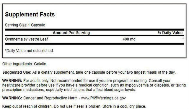 - TRADITIONAL GLUCOSE SUPPORT: Gymnema Sylvestre Leaf is an Ayurvedic herb known for supporting glucose levels already within the normal range. Swanson's convenient capsules deliver 400mg per capsule for healthy blood glucose and metabolic support.