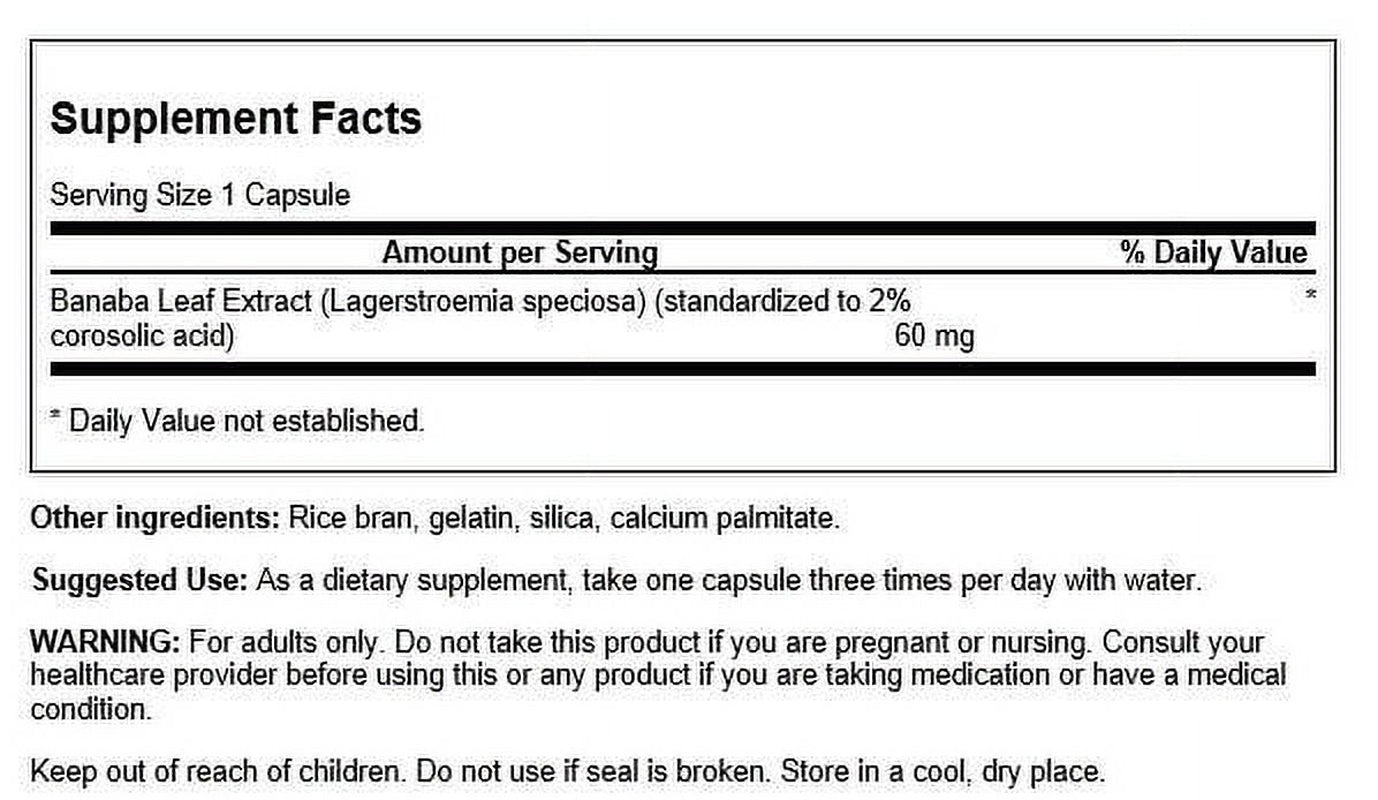 Swanson High Potency Banaba Extract 2% Corosolic Acid 60 Mg 90 Capsules - 1 Pack is backordered and will ship as soon as it is back in stock.