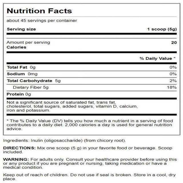 Inulin powder is a soluble fiber and fructo-oligosaccharide (FOS) that functions as a prebiotic to promote digestive health by stimulating beneficial bacteria in the gut. Chicory-derived Inulin powder from Swanson is suitable for adding to many of your favorite foods as a thickening agent and sweetener. The possibilities are endless and the benefits are great.