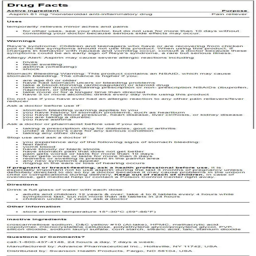 Swanson Low Dose Aspirin Enteric Coated 81 Mg 360 Tablets