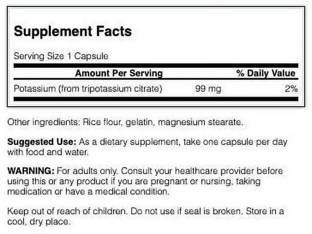 - NATURAL ENERGY & HEART SUPPORT: Swanson's premium Potassium Citrate supplement is an essential electrolyte mineral supporting cardiovascular health and energy production using natural ingredients you can trust.