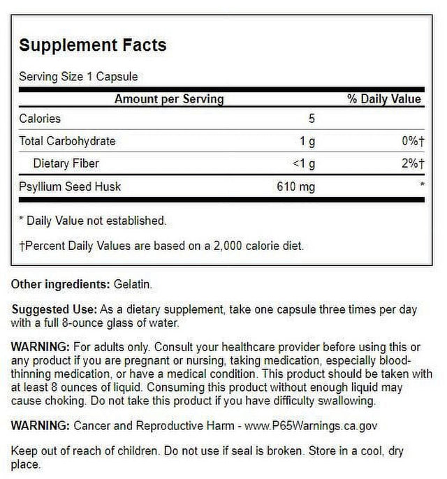 Swanson Psyllium Husk Capsules, 610 Mg, 300 Count - 1 Pack is backordered and will ship as soon as it is back in stock.
