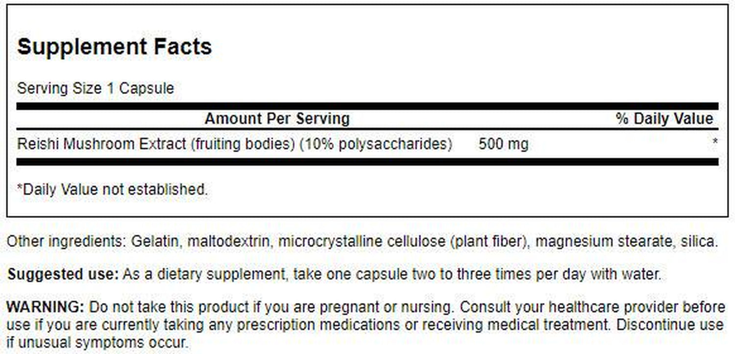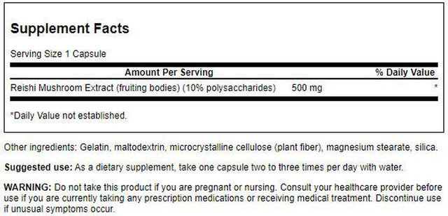 | Product Name | Swanson Reishi Mushroom Extract Standardized to 10% polysaccharides 500 mg 90 Capsules |