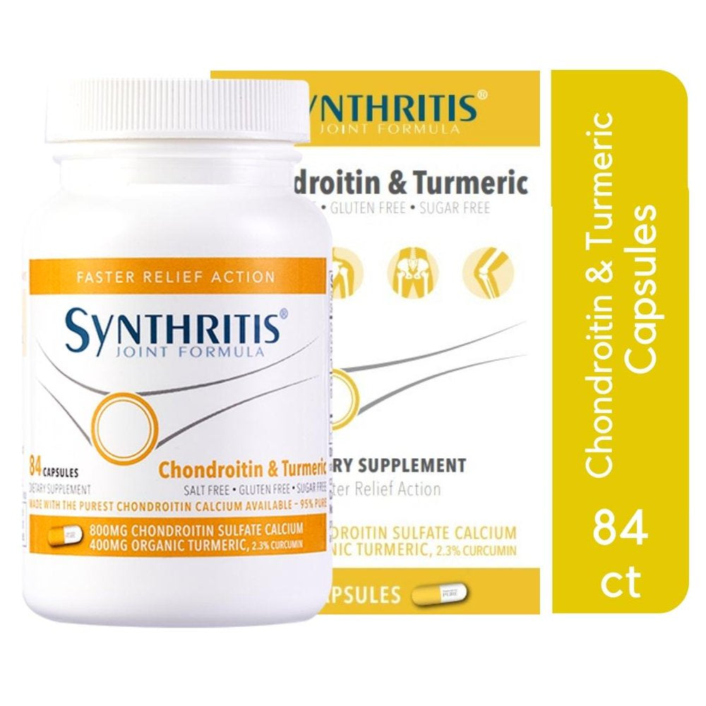 Synthritis Joint Formula Chondroitin and Turmeric, 84CT, Fast Relief Action Joint Health Supplement Chondroitin and Turmeric Capsules