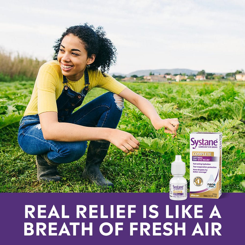 Find relief from your dry eye symptoms, whether it's from dry air or from digital eye strain. Introducing SYSTANE COMPLETE, a soothing eye drop that is formulated to support all layers of the tear film. These lubricant eye drops give you fast-acting hydration and long-lasting dry eye symptom relief you can feel. Your eyes take in a lot. And sometimes that can be a problem for your eyes. Although there's no cure for dry eye, the SYSTANE Family of Products includes options that are used for the temporary relief of burning and irritation due to dryness of the eye.