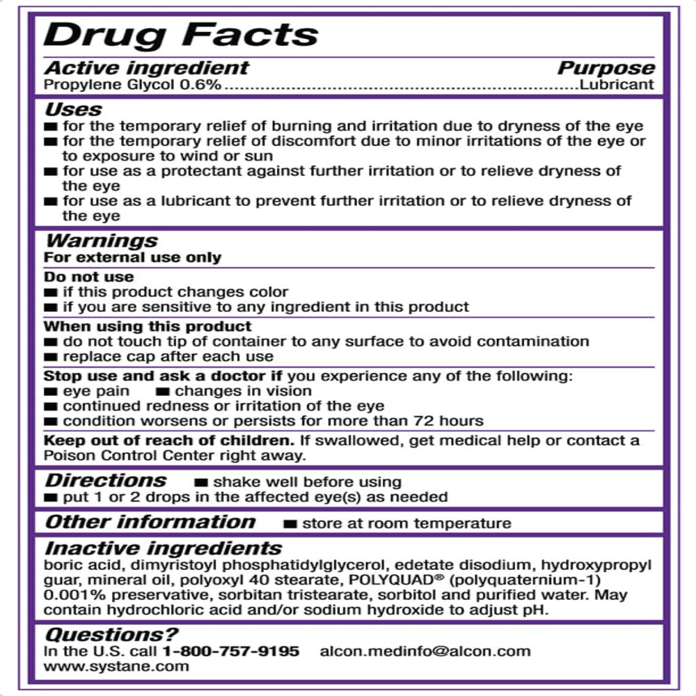 - MULTI-SYMPTOM: SYSTANE COMPLETE Lubricant Eye Drops are designed to temporarily relieve symptoms associated with dry eye including burning and irritation due to dryness of the eye and discomfort due to minor irritations of the eye or to exposure to wind or sun.
