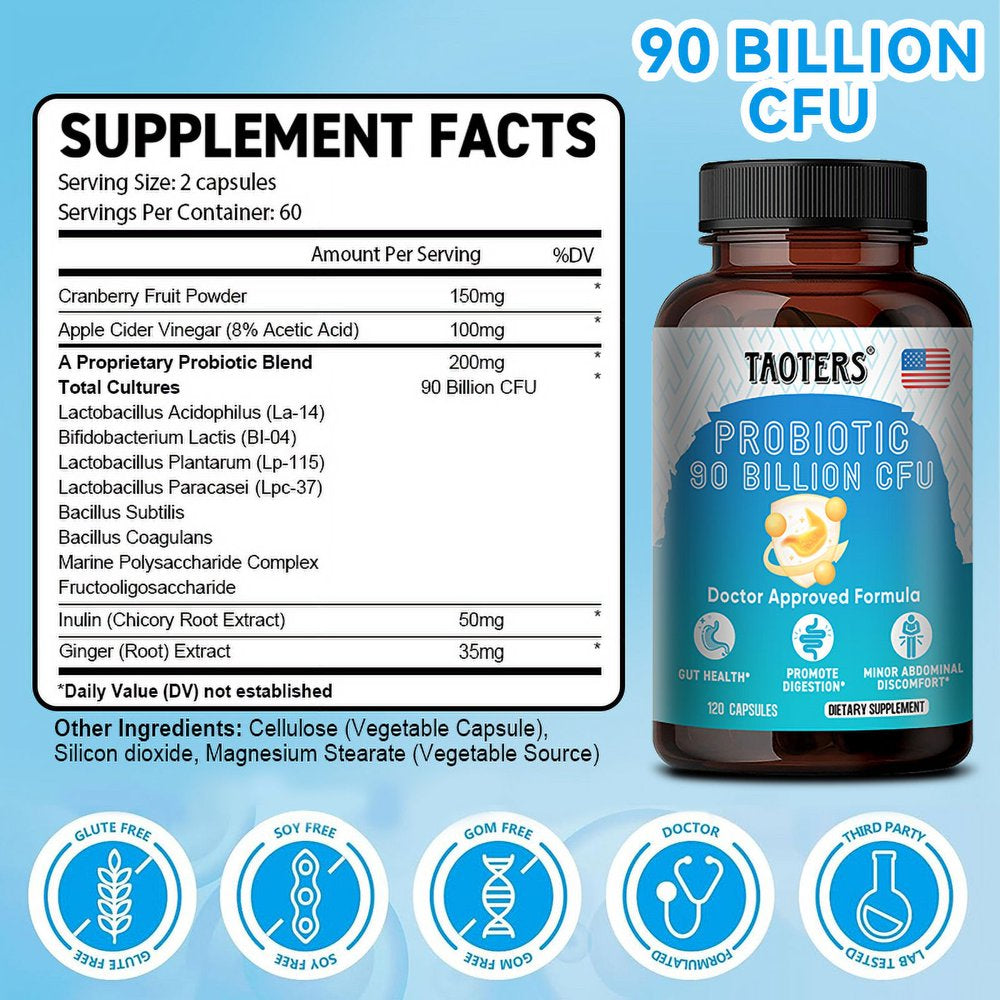 TAOTERS Daily Probiotic Supplement Capsules - Digestion, Immunity, Gut Health