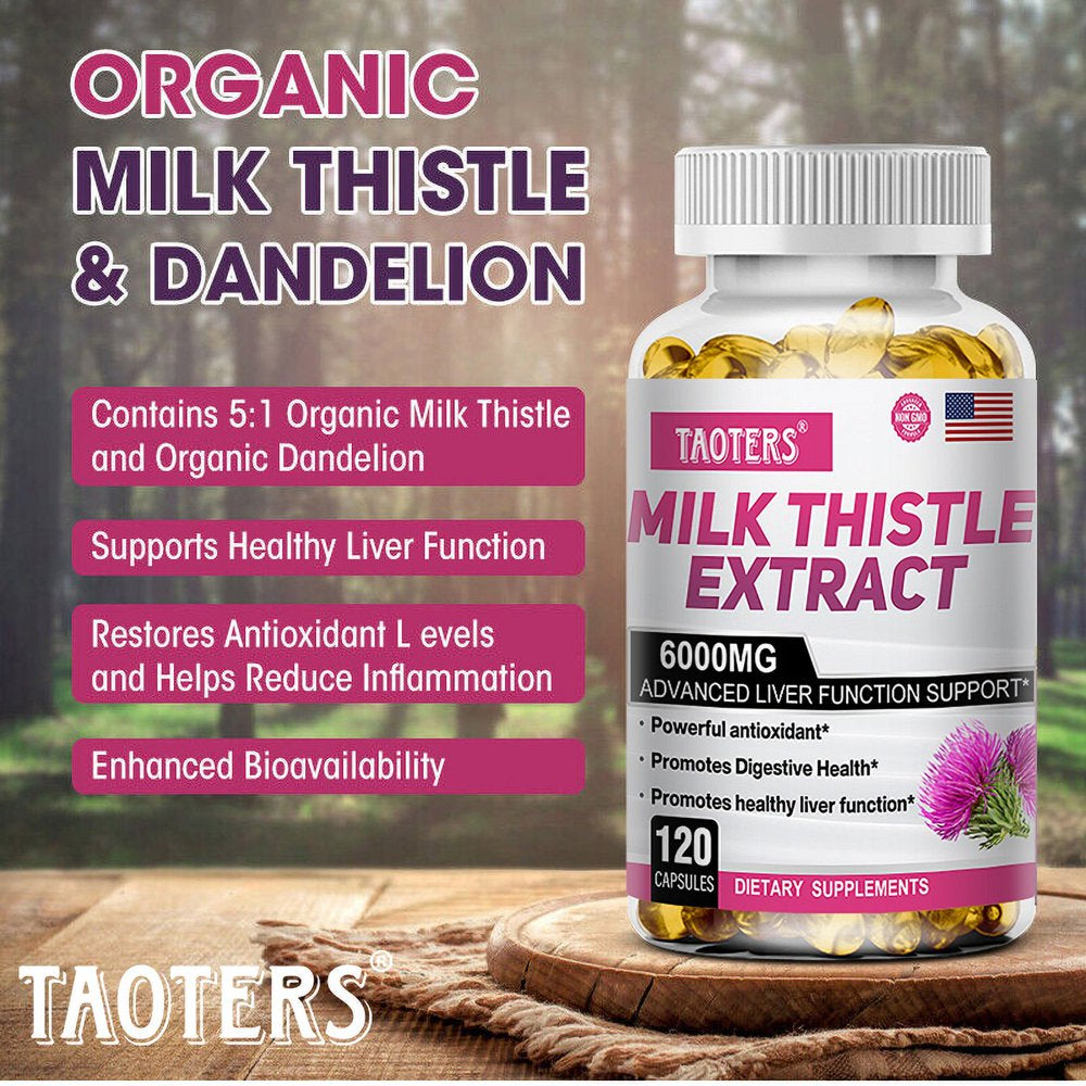 TAOTERS Milk Thistle Extract 6000 Mg Softgels, Advanced Liver Support, with Dandelion and Artichoke...-60Capsules