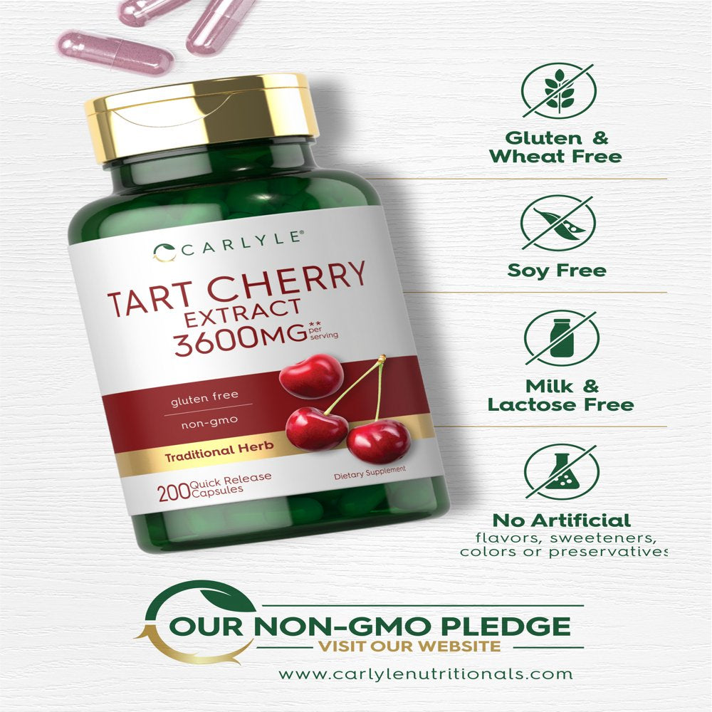 Tart Cherry Capsules | 200 Count | 3600Mg | Non-Gmo & Gluten Free | by Carlyle