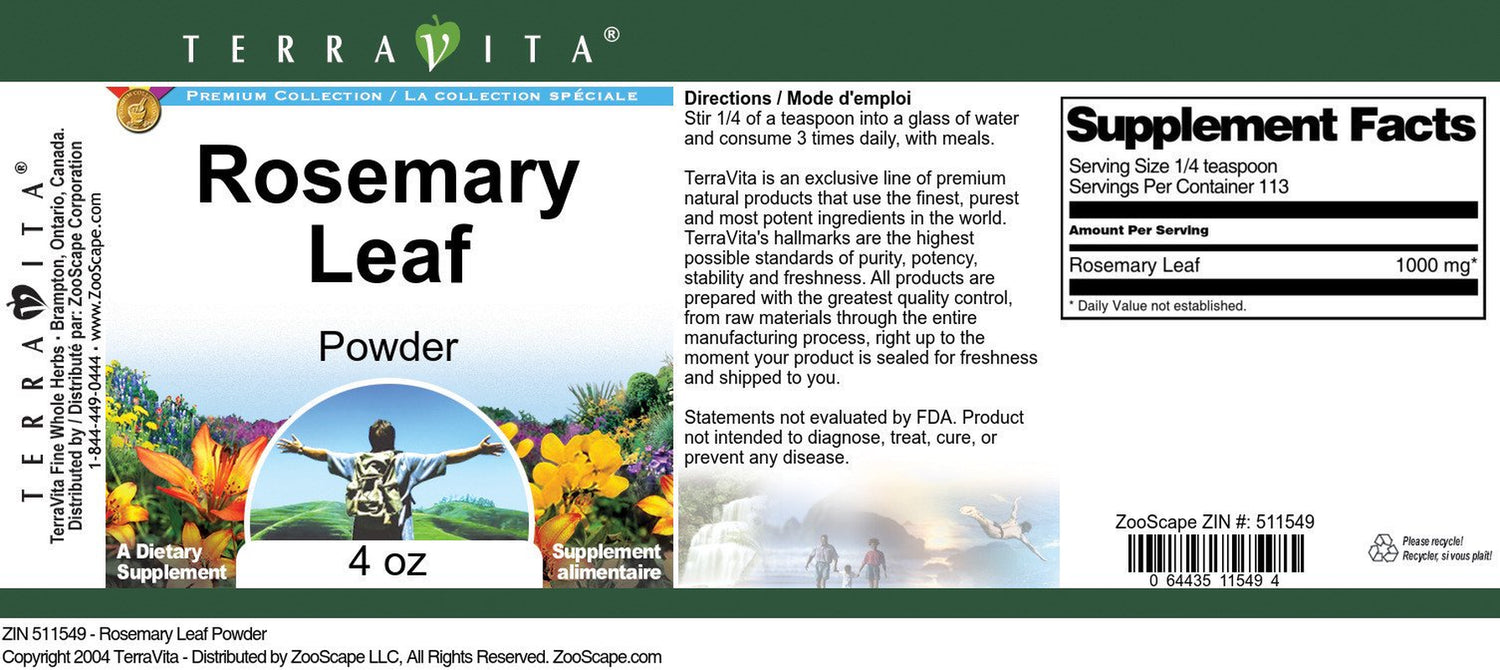 | Product Name | TerraVita Rosemary Leaf Powder, (4 oz, 1-Pack, Zin: 511549) |