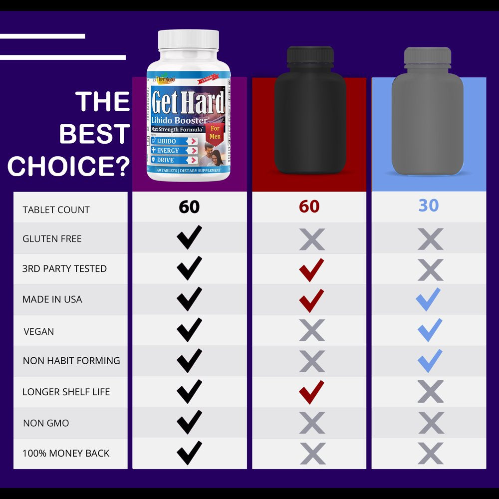 Male energy boosters & performance booster testosterone pills can serve multiple functions. As a result, the health and strength that ultimately leads to a strong and healthy body. Another prominent feature of Testosterone Booster is that it can help to support mood and energy. This energy booster male enhancing supplement contains a powerful blend of natural herbs. These natural herbs have healthful properties. Thus, you can have the energy to perform your best everywhere. Furthermore this can also help you to support your productivity at work because of your supported energy levels. Lastly out Testosterone Booster supplement may also prove to be ideal for those people who are looking to satisfy their partner to the maximum in the bedroom. Unlock your true potential with Get Hard Testosterone Booster, the ultimate solution for achieving peak performance and vitality. Our advanced formula is specially designed to naturally elevate testosterone levels, providing you with a wide range of benefits for your body and mind. Experience support energy more confident you.