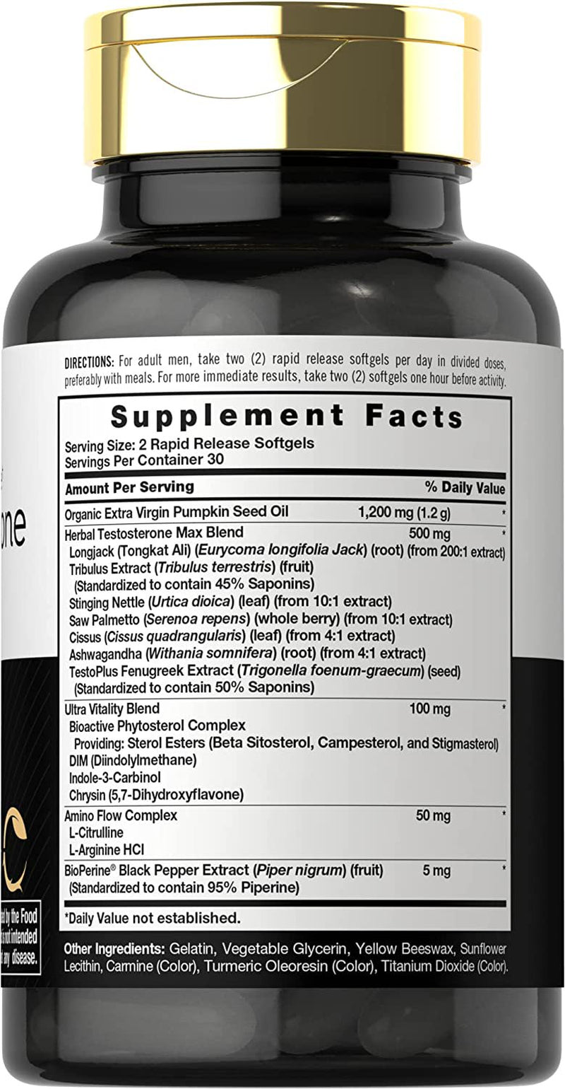 Testosterone Power for Men | 60 Rapid Release Softgels | by Carlyle