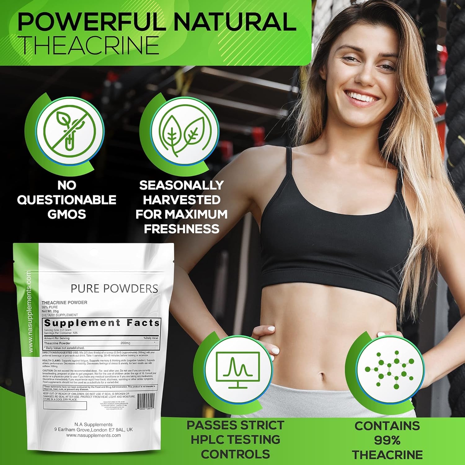 Theacrine Powder | 99% Pure | 25 Grams Pouch | Energy Supplement for Adults - Advanced Focus Support for Concentration - Clean, Natural Pre Workout Supplement for Men and Women | 3Rd Party Lab Tested