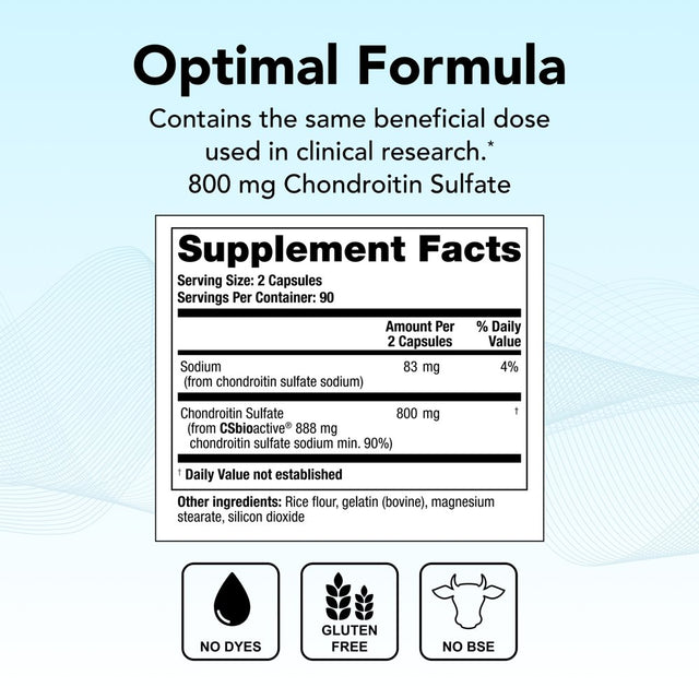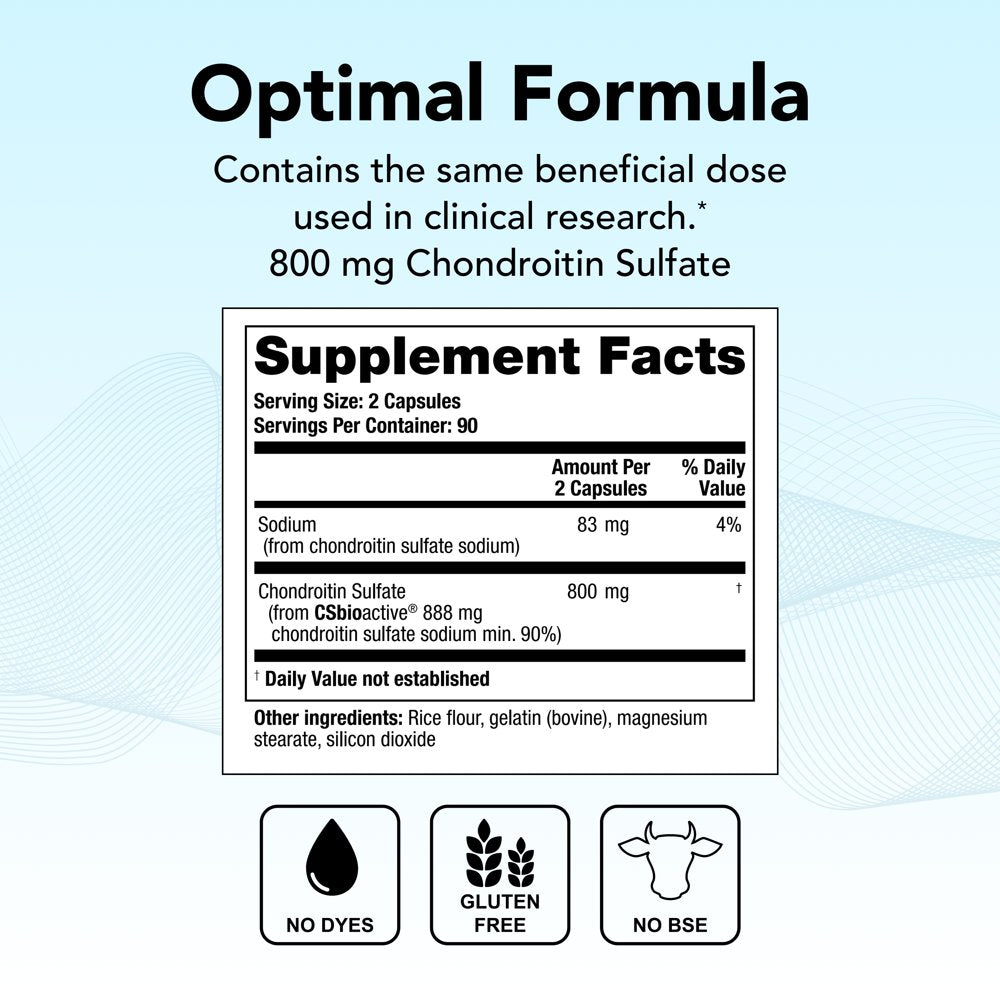 - Optimal Formula and Dosing: contains 800 mg of chondroitin sulfate from CS b-Bioactive, the most researched chondroitin on the market