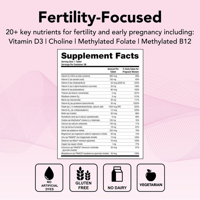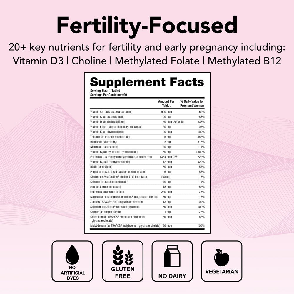 - Fertility-Focused: TheraNatal Core preconception supplement provides the optimized dose of nutrients for preconception and early pregnancy with higher vitamin D, lower iron, and methylated folate