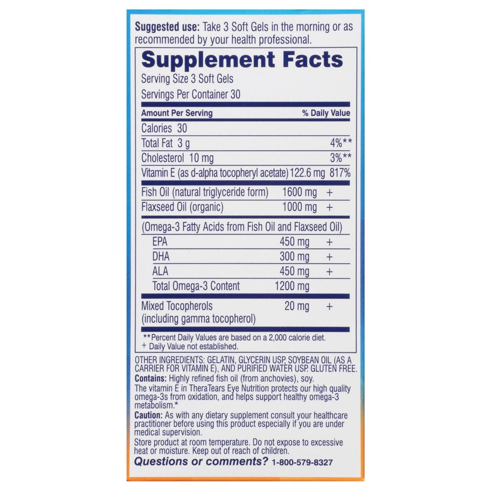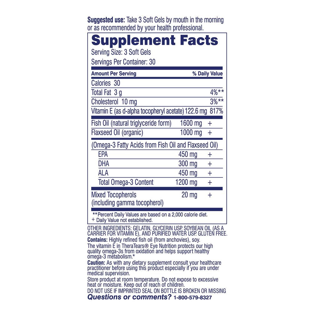 - Contains 1 bottle of TheraTears Eye Nutrition 1200mg Omega-3 Supplement, 90 count