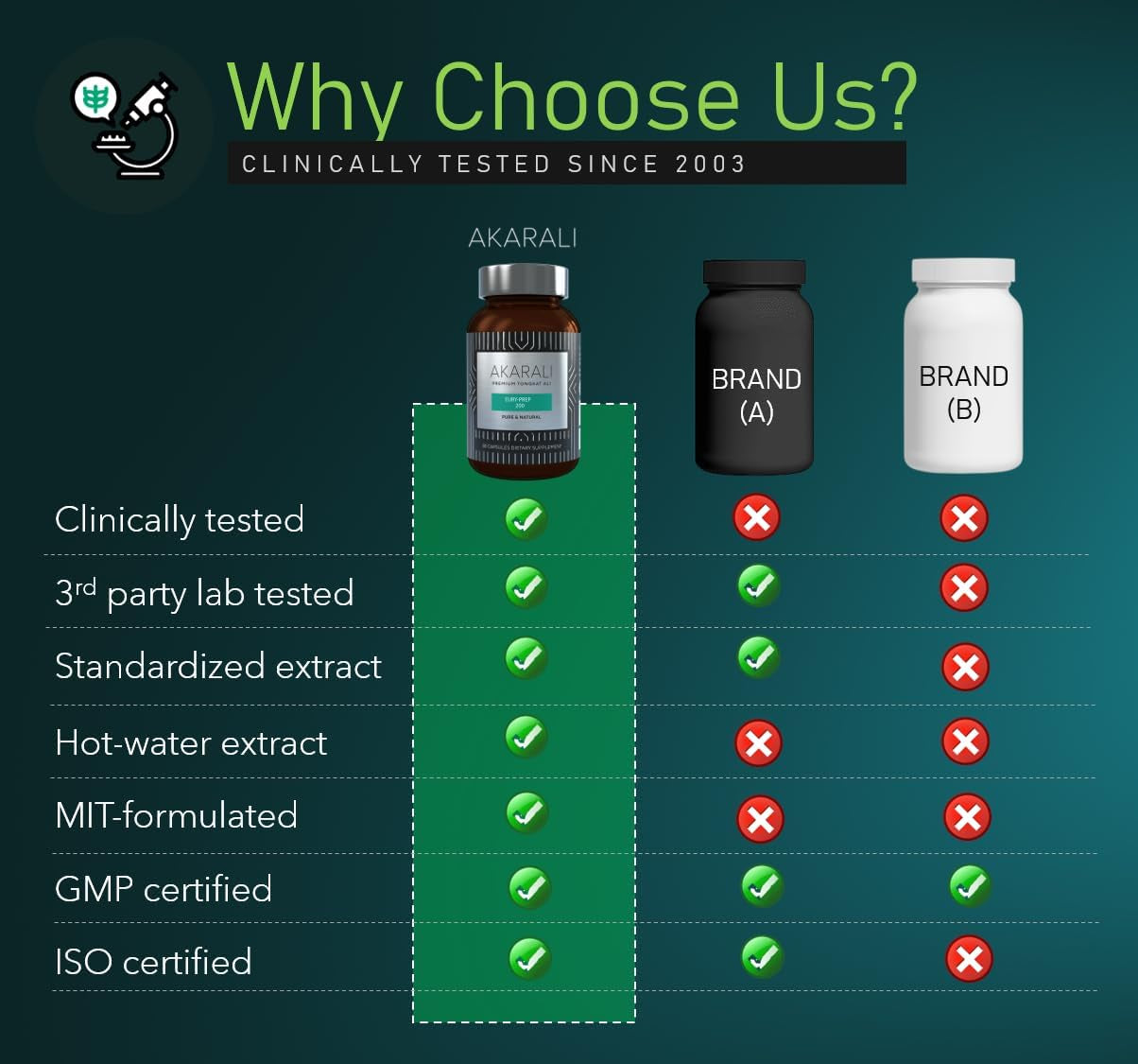 AKARALI contains a US-patented Physta standardized extract that delivers the strongest and most potent Tongkat Ali on Amazon. AKARALI is the best clinically tested Tongkat Ali for men and women with more than 26 clinical trials.