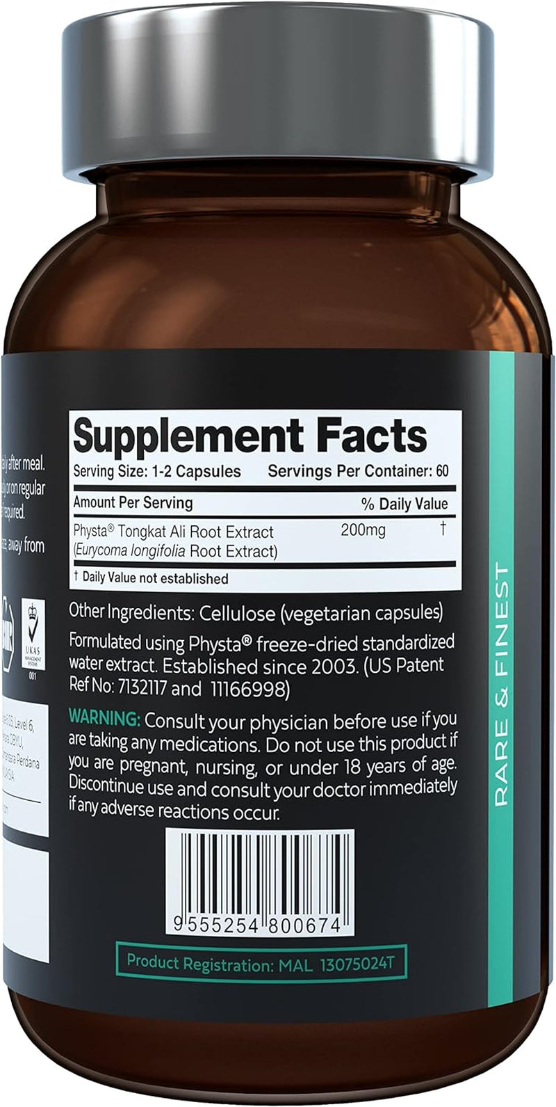 - ✅200 mg of Pure Tongkat Ali: To ensure maximum quality, efficacy and purity, our product is all natural and does not contain any fillers, agents, or additives. It is Gluten Free, GMP and Halal Certified,100% Vegan friendly. Tongkat Ali is also known as Longjack and Malaysian Ginseng.
