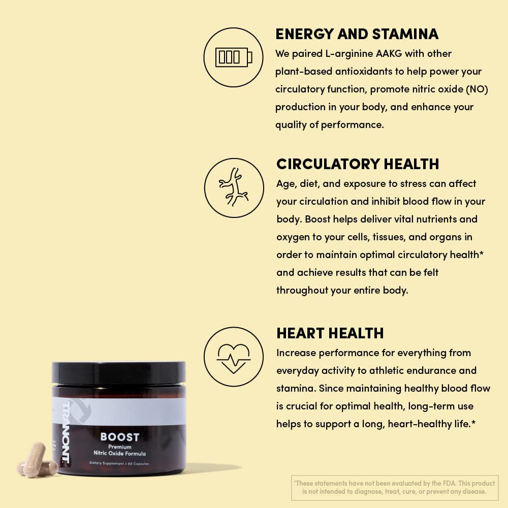 Tranont Boost - Premium Nitric Oxide Supplement Formula - Promotes Optimal Health - Improves Performance - Daily Nitrate Supplement - 60 Capsules