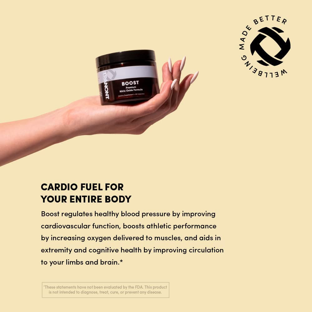 Boost is cardio fuel at is finest. It promotes natural nitric oxide production in the body to enhance the amount of rich oxygen and vital nutrients that get delivered to cells, and tissues, helping provide optimal circulatory-health results that can be felt throughout your entire body. Since maintaining healthy blood flow is crucial for optimal health, long-term Boost use will help support a heart-healthy life.