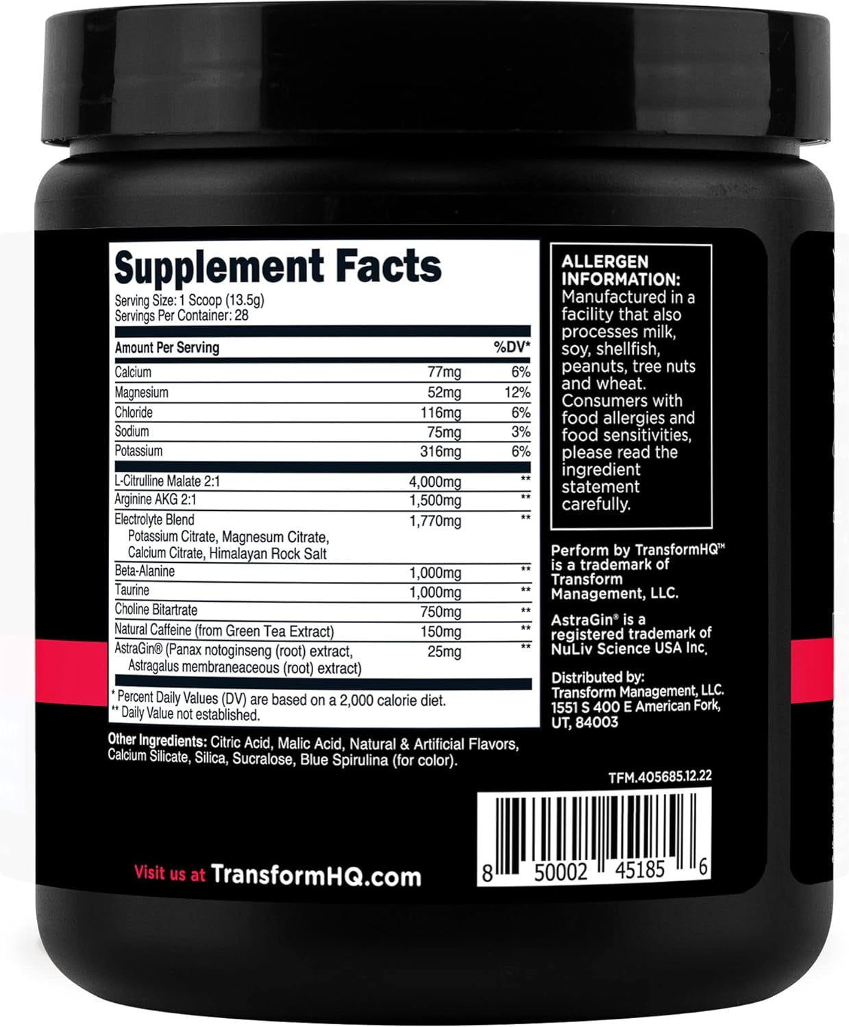 Transformhq Pre-Workout 28 Servings - Perform - Gluten Free, Non-Gmo (Blue Raspberry) - Blue Raspberry is backordered and will ship as soon as it is back in stock.