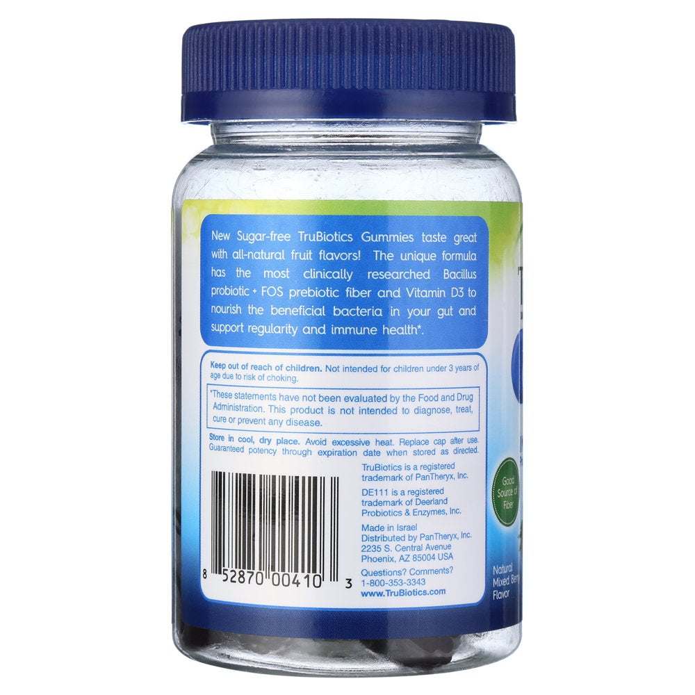 New sugar-free TruBiotics Gummies taste great with all-natural fruit flavors! The unique formula has the most clinically researched Bacillus probiotic, plus FOS prebiotic fiber and Vitamin D3 to nourish the benficial bacteria in your gut and support regularity and immune health.