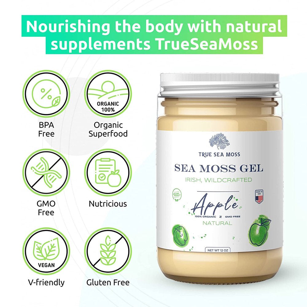 Trueseamoss Wildcrafted Irish Sea Moss Gel – Nutritious Raw Seamoss Rich in Minerals, Proteins & Vitamins – Antioxidant Health Supplement, Vegan-Friendly Made in USA (Apple, 4) - Apple / 4 is backordered and will ship as soon as it is back in stock.