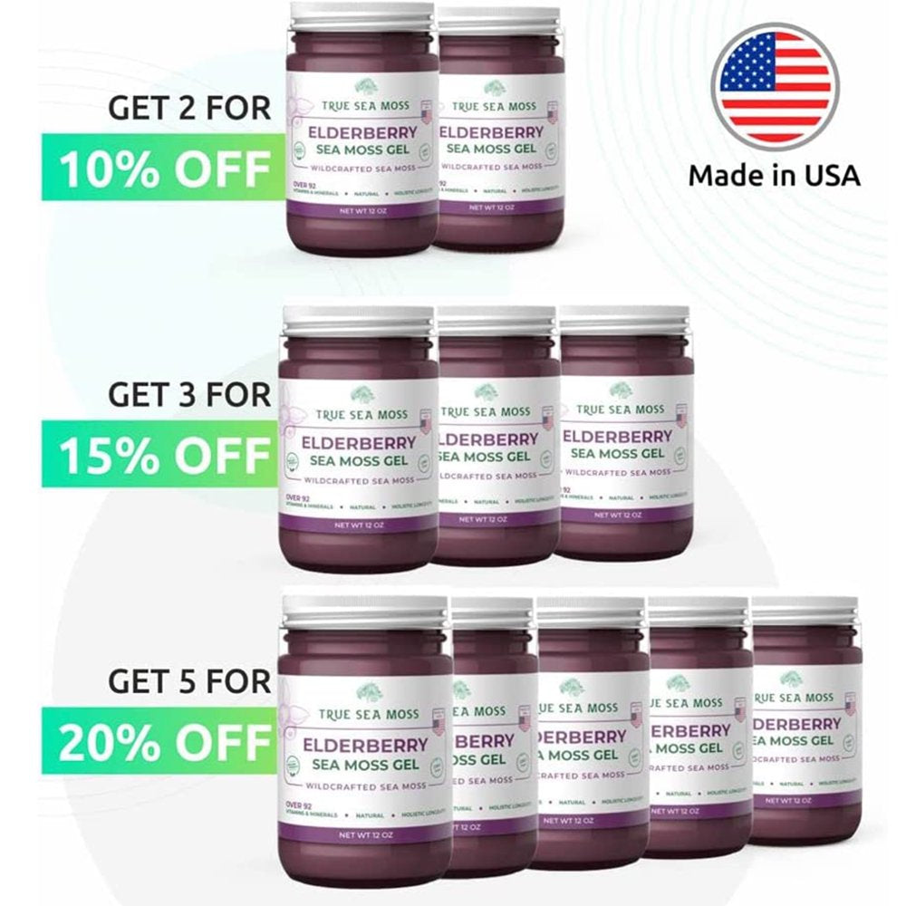 Trueseamoss Wildcrafted Irish Sea Moss Gel – Nutritious Raw Seamoss Rich in Minerals, Proteins & Vitamins – Antioxidant Health Supplement, Vegan-Friendly Made in USA (Elderberry, 5) - Elderberry / 5 is backordered and will ship as soon as it is back in stock.