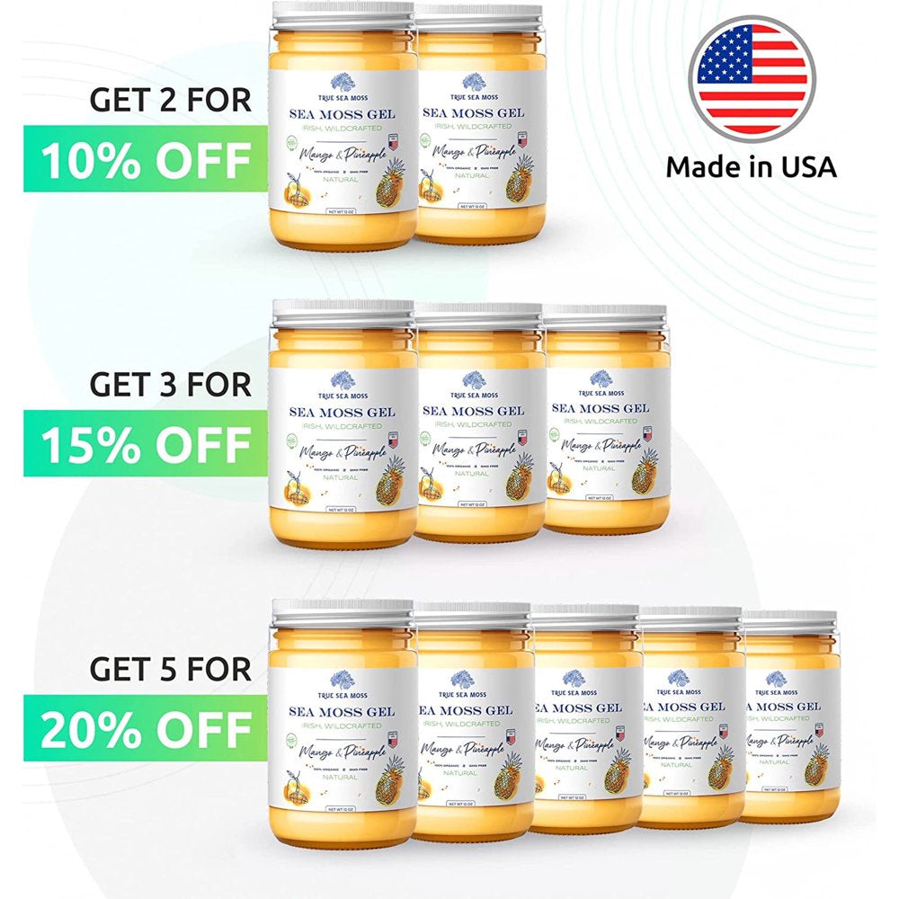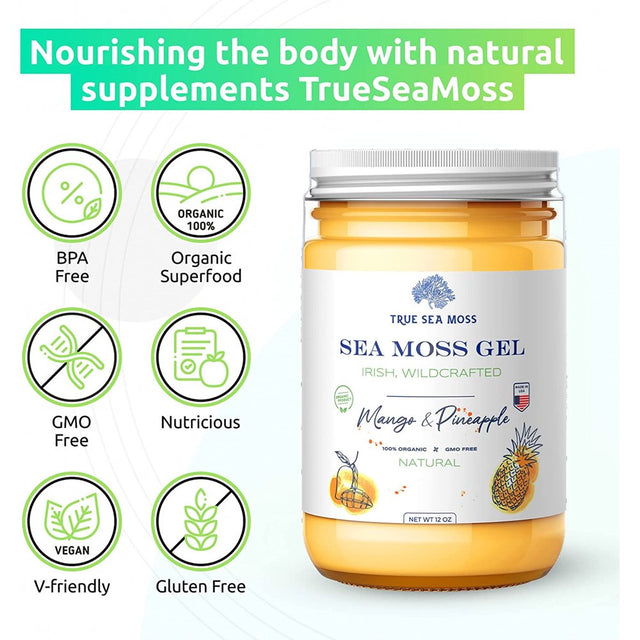 Trueseamoss Wildcrafted Irish Sea Moss Gel – Nutritious Raw Seamoss Rich in Minerals, Proteins & Vitamins – Antioxidant Health Supplement, Vegan-Friendly Made in USA (Mango/Pineapple, 1) - Mango/Pineapple / 1 is backordered and will ship as soon as it is back in stock.