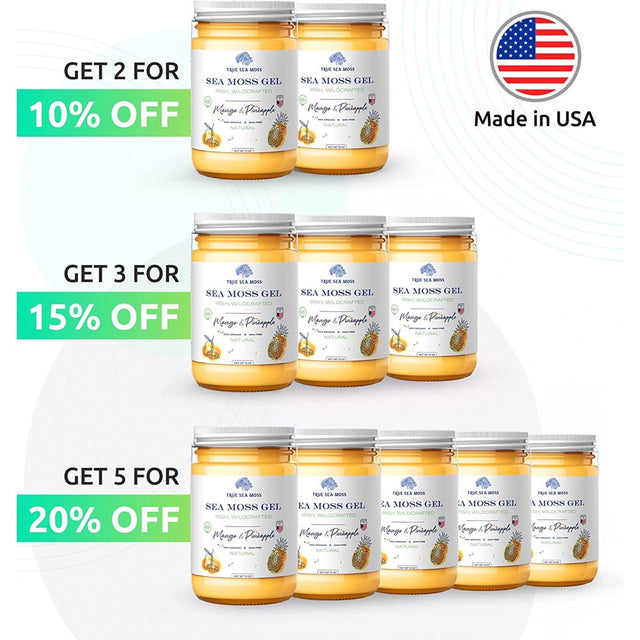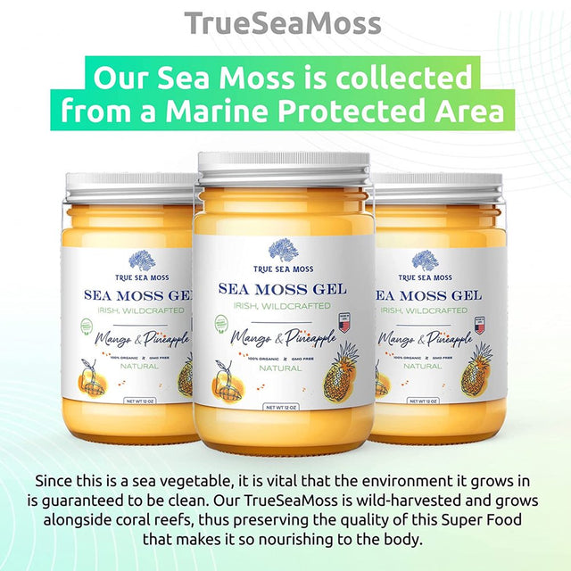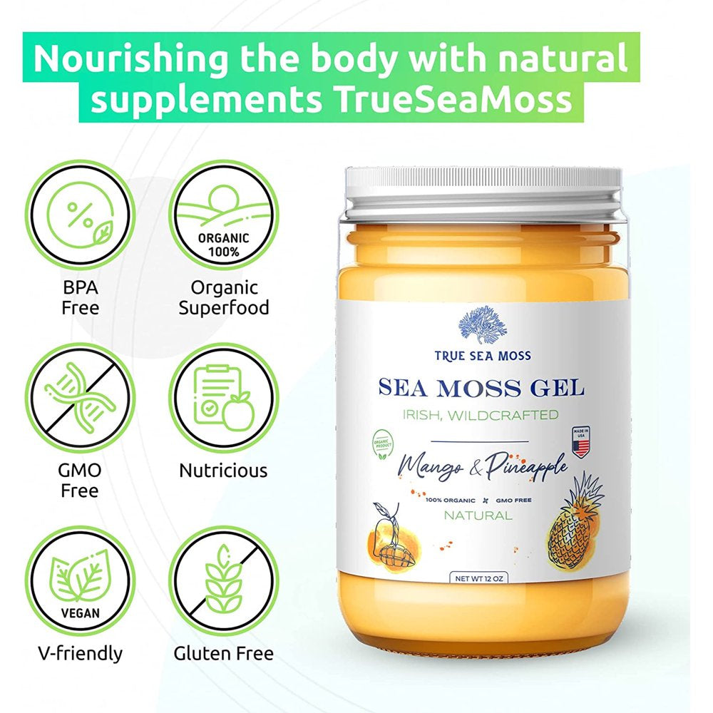 Trueseamoss Wildcrafted Irish Sea Moss Gel – Nutritious Raw Seamoss Rich in Minerals, Proteins & Vitamins – Antioxidant Health Supplement, Vegan-Friendly Made in USA (Mango/Pineapple, 5) - Mango/Pineapple / 12Oz is backordered and will ship as soon as it is back in stock.