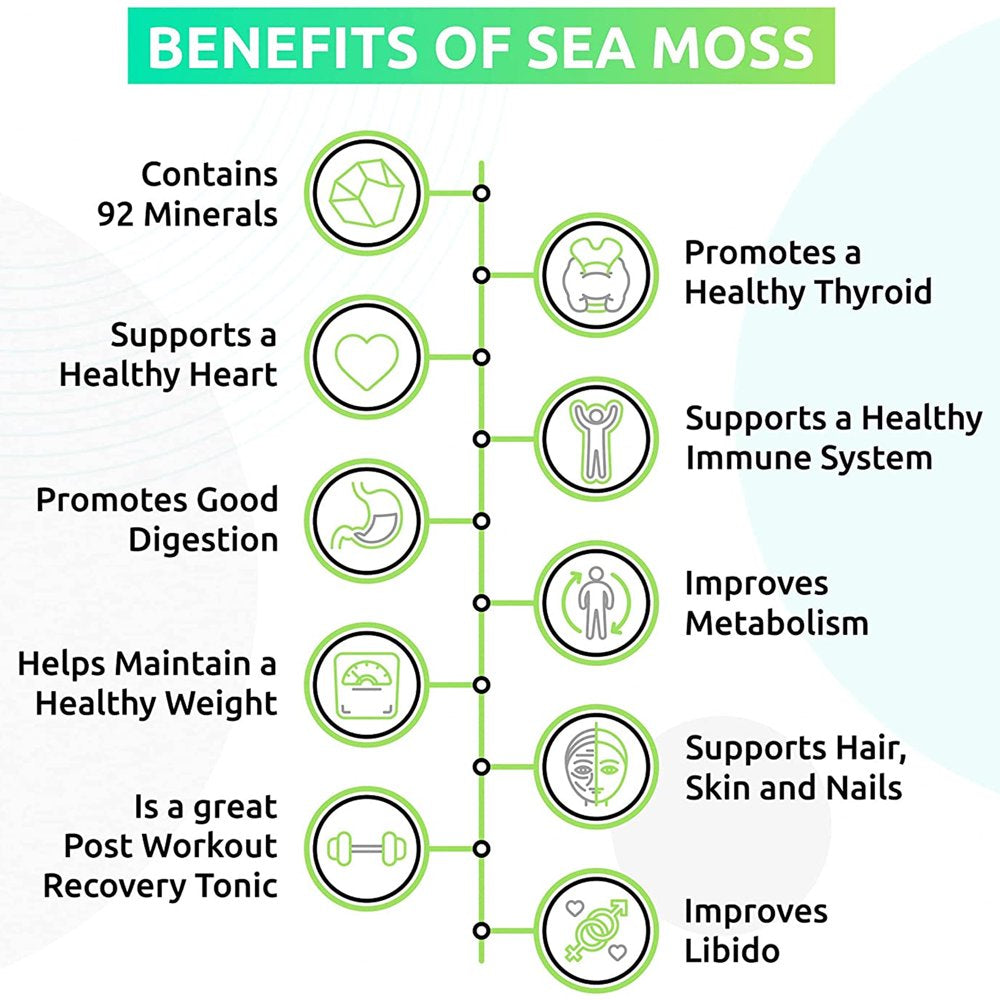 - MULTIPLE BENEFITS FOR YOUR BODY: Give your body a daily treat of one of nature’s best superfoods with our wildcrafted sea moss gel. It is great for promoting a healthy thyroid and a good digestion.