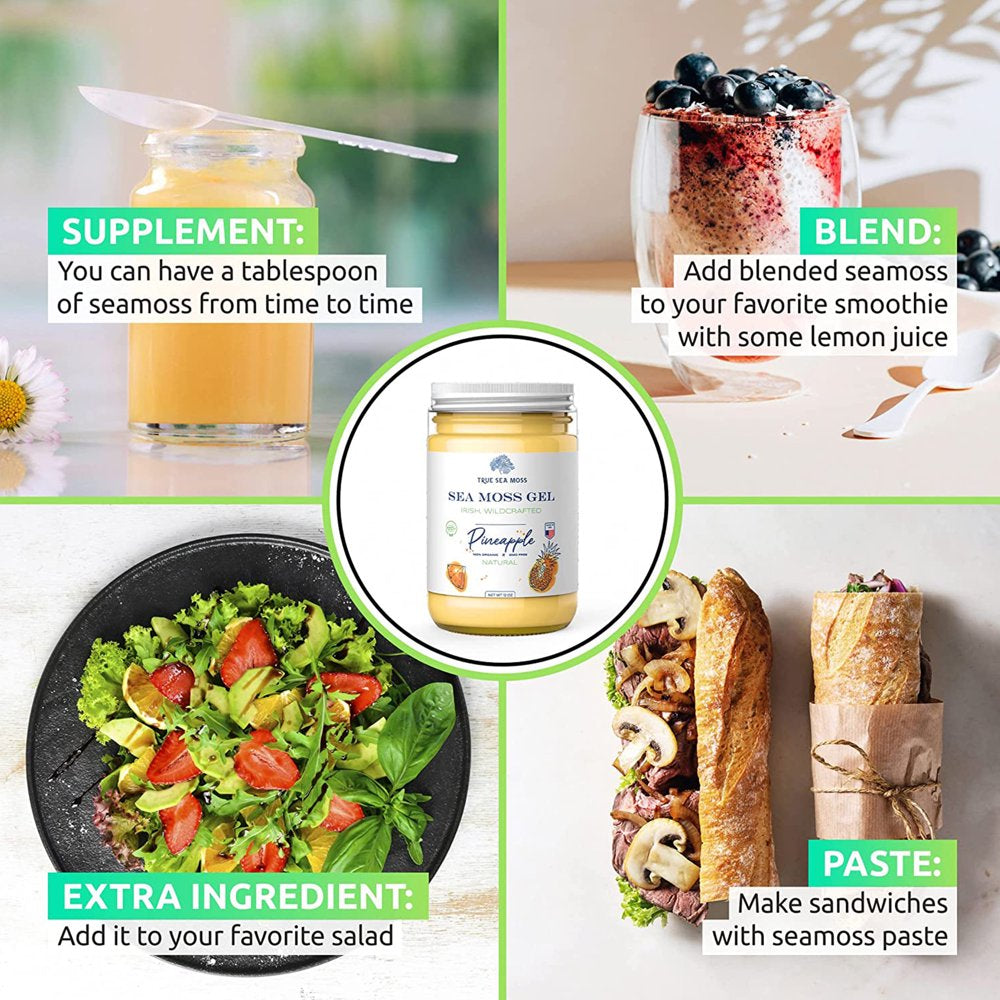 Trueseamoss Wildcrafted Irish Sea Moss Gel – Nutritious Raw Seamoss Rich in Minerals, Proteins & Vitamins – Antioxidant Health Supplement, Vegan-Friendly Made in USA (Pineapple, 1) - Pineapple / 1 is backordered and will ship as soon as it is back in stock.