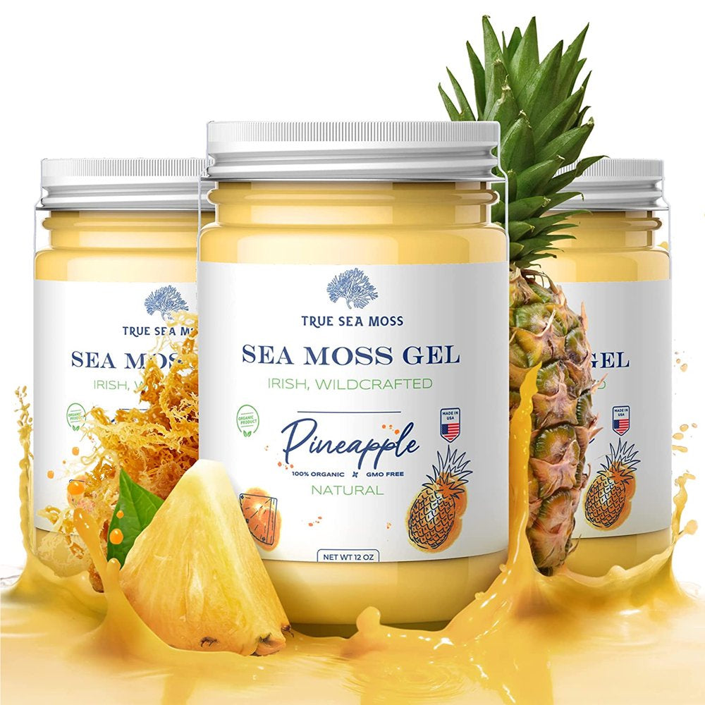 Trueseamoss Wildcrafted Irish Sea Moss Gel – Nutritious Raw Seamoss Rich in Minerals, Proteins & Vitamins – Antioxidant Health Supplement, Vegan-Friendly Made in USA (Pineapple, 3)