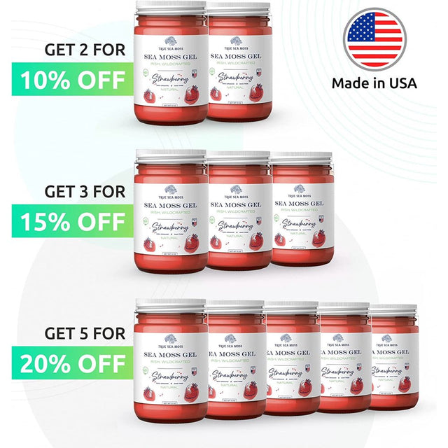 Trueseamoss Wildcrafted Irish Sea Moss Gel – Nutritious Raw Seamoss Rich in Minerals, Proteins & Vitamins – Antioxidant Health Supplement, Vegan-Friendly Made in USA (Strawberry, 5) - Strawberry / 5 is backordered and will ship as soon as it is back in stock.