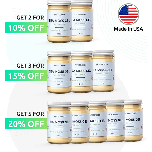 Trueseamoss Wildcrafted Irish Sea Moss Gel Raw Sea Moss Supplement, Original 12 Oz 5-Pack - Original / 5 is backordered and will ship as soon as it is back in stock.