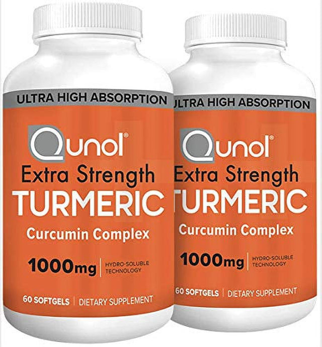Turmeric Curcumin Softgels, Qunol with Ultra High Absorption 1000Mg, Joint Support, Dietary Supplement, Extra Strength, 60 Count Twin Pack
