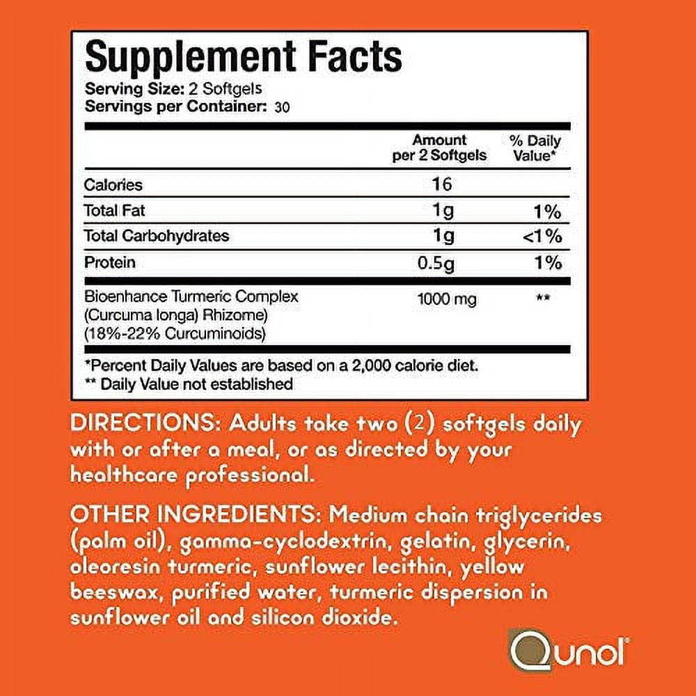 Turmeric Curcumin Softgels, Qunol with Ultra High Absorption 1000mg, Joint Support, Dietary Supplement, Extra Strength, 60 Count Twin Pack