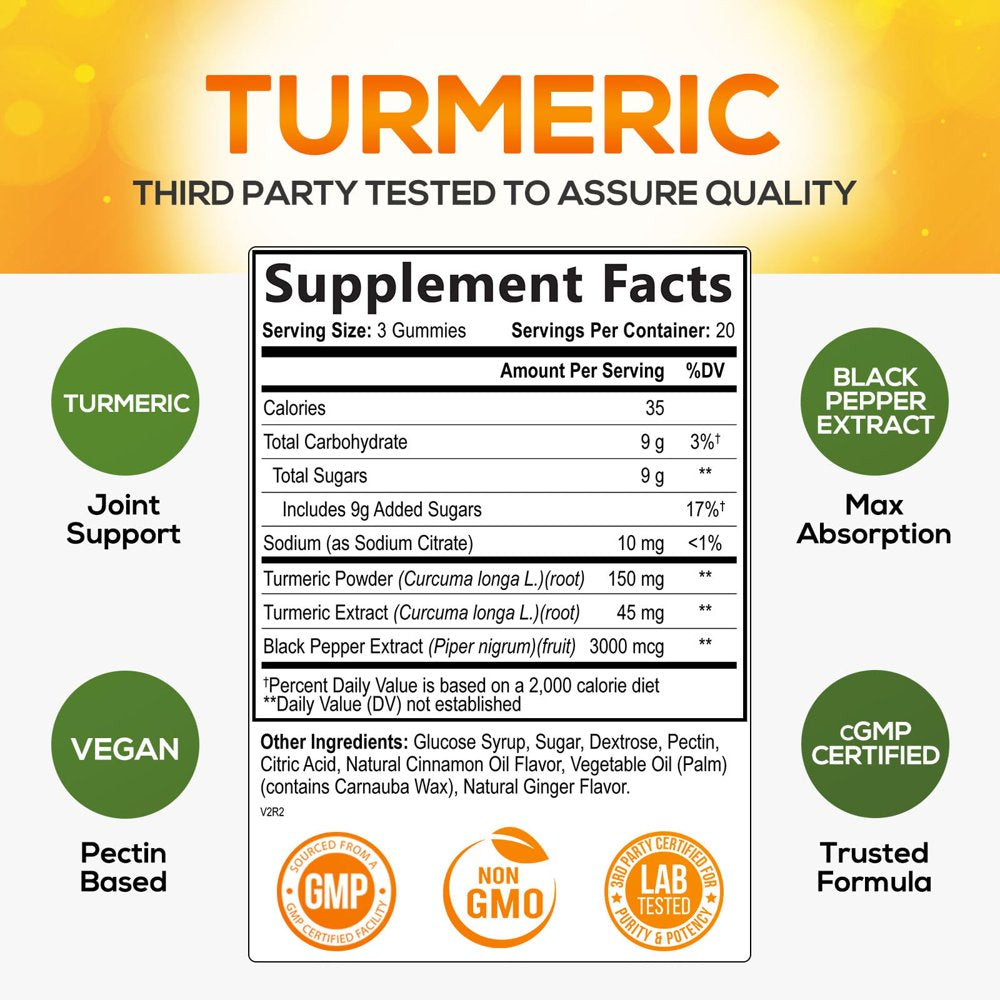 • Trusted Formula: Our Turmeric Cinnamon Gummies are formulated and manufactured following strict cGMP guidelines; Our Turmeric Gummies are third party tested to assure the quality and purity of each batch