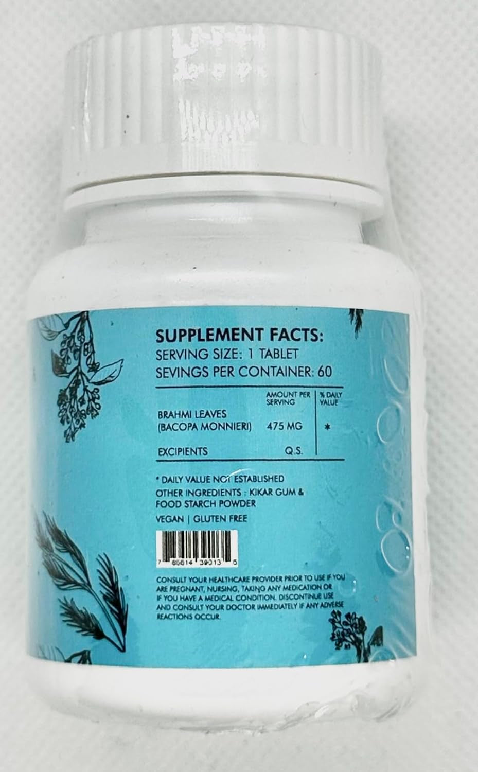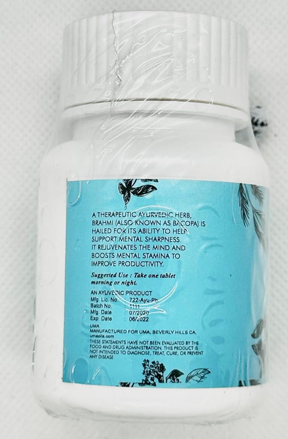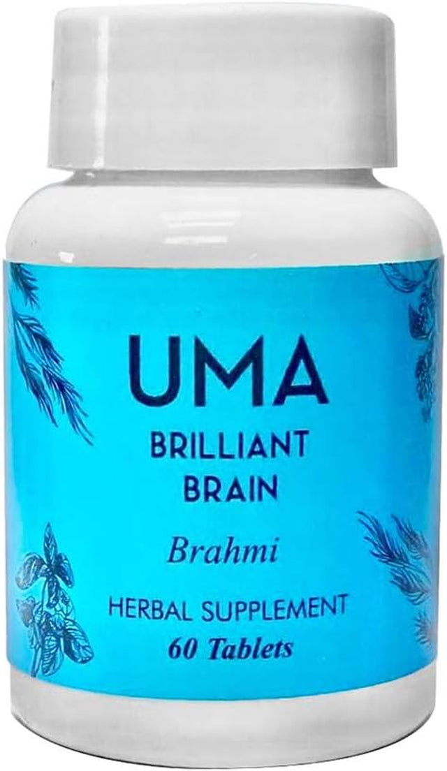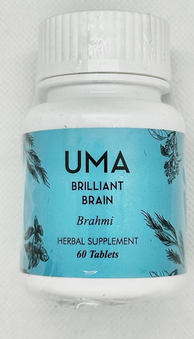 UMA Brilliant Brain Herbal Supplement | 100% Organic Ayurvedic Brahmi Supplement for Concentration, Focus, Recall Ability | Vegan Formula (60 Tablets)