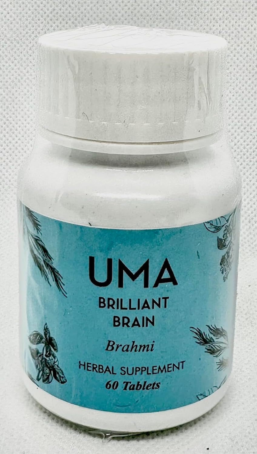 UMA Brilliant Brain Herbal Supplement | 100% Organic Ayurvedic Brahmi Supplement for Concentration, Focus, Recall Ability | Vegan Formula (60 Tablets) is backordered and will ship as soon as it is back in stock.