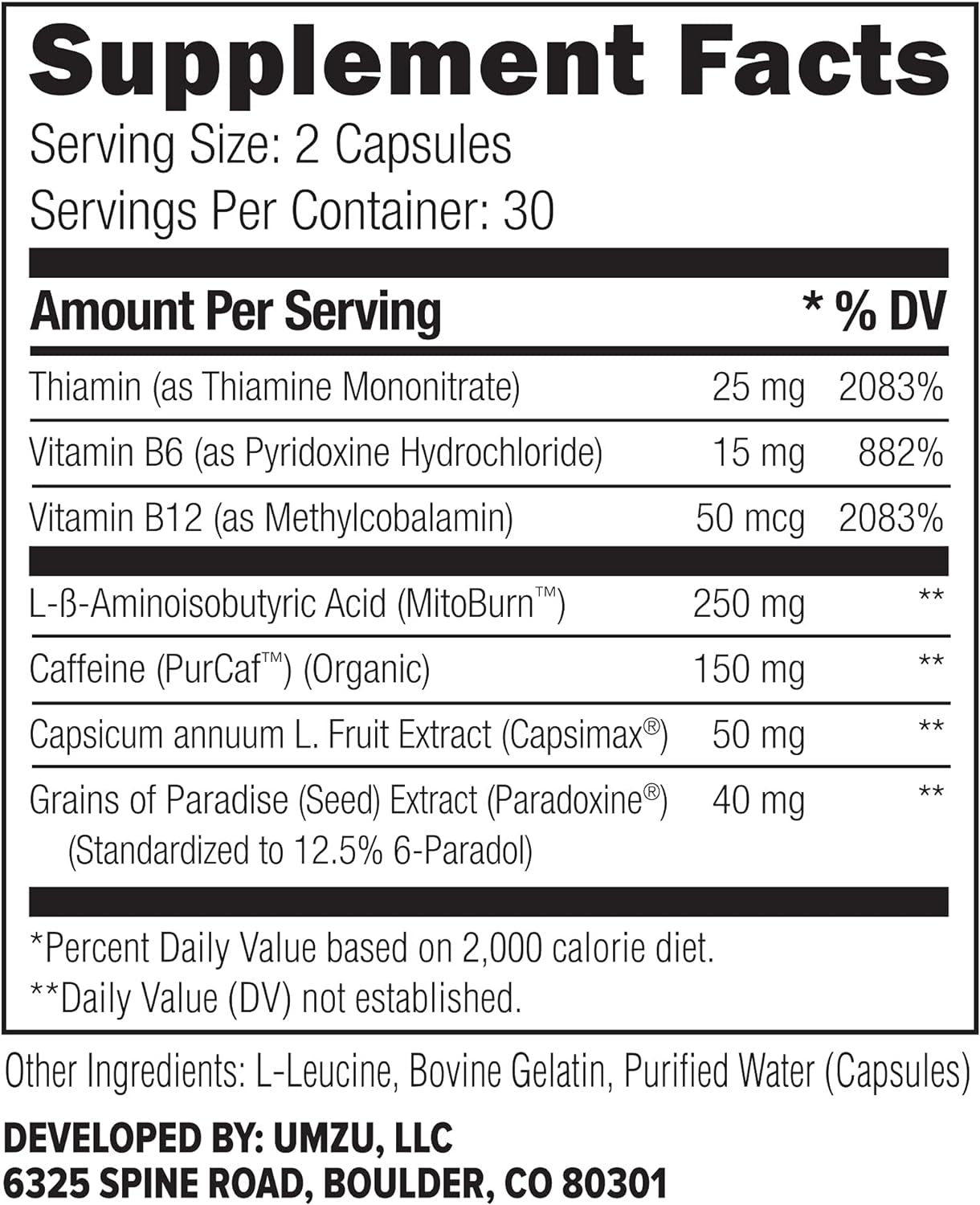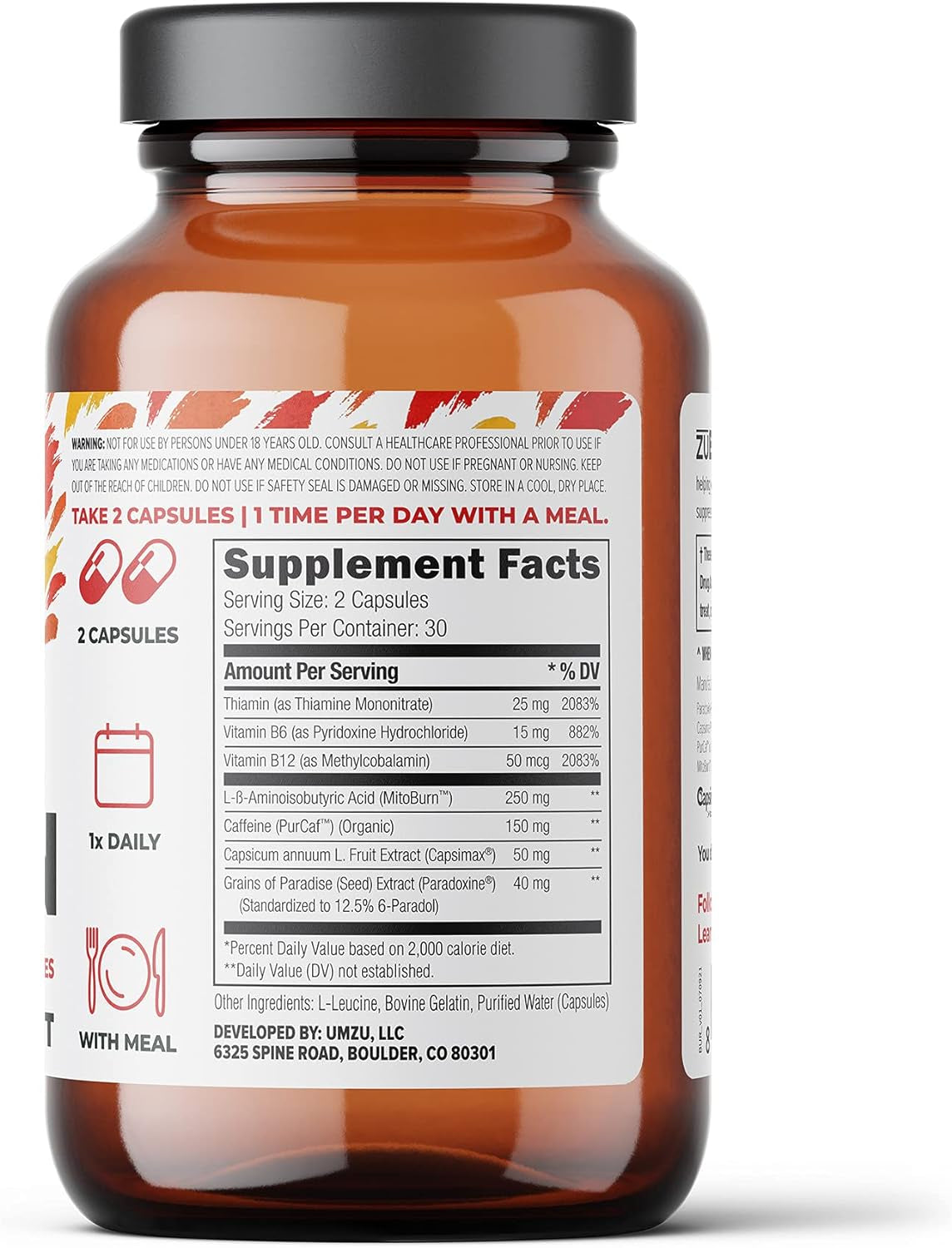 UMZU Zuburn - Thermogenic Supplement to Support Metabolism and Energy, Thermogenic Fat Burner, Blend of Vitamins and Caffeine - (30 Day Supply 60 Capsules)
