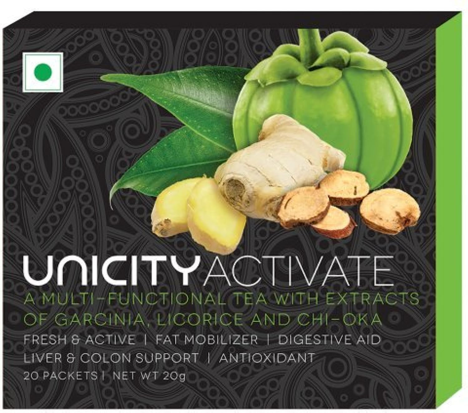 ACTIVATE Multi-Functional and Revitalizing Drink for Vigorous Health and Taste. The crafting of different types of teas continued to change over time. Unicity’s indigenously made Unicity ACTIVATE, with botanical extracts is very unique. Unicity ACTIVATE’s characteristic, includes a different taste and diverse health benefits with a feel of well-being. Whether you prefer spicy or sweet, tangy or fruity, ACTIVATE is bound to offer you the perfect culmination with a scintillating aroma that not only soothes the senses, but also rejuvenates you. It’s an exclusive combination made better with the Licorice extract, Chi-Oka Matcha, Green tea extract, Garcinia extract, Ginger extract and Piperine. Unicity ACTIVATE comprises of Licorice extract -beneficial for respiratory health, colon and liver support, acts as a mild laxative, relieves acid in stomach, aids in relieving heart burn and indigestion. BENEFITS Unicity ACTIVATE is one drink that does all of these in an extremely effective manner. Combining ancient herbal wisdom with modern-day ingenuity, Unicity India in collaboration with Unicity USA has carefully formulated Unicity ACTIVATE. We offer high quality product to serve you. We want our customers to relive an amalgamation of diversity in each and every sip of Unicity ACTIVATE to make your tea experience the best ever! UNICITY ACTIVATE HAS CHI-OKA EXTRACT GROWN EXCLUSIVELY IN PARTS OF JAPAN ONLY. UNICITY ACTIVATE IS EASY TO MAKE ANYWHERE, ANYTIME. IT HAS NO SUGAR ADDED IN THE PRODUCT. IT IS A MULTI-FUNCTIONAL TEA WITH NUMEROUS HEALTH BENEFITS. UNICITY ACTIVATE HAS A TINGLING LEMON AND PIPERINE FLAVOR. HOW TO USE RECOMMENDED Maximum 2 Sachets per day. MIX Mix the content of 1 sachet with 100 to 150ml of hot water. DRINK Stir well and drink.