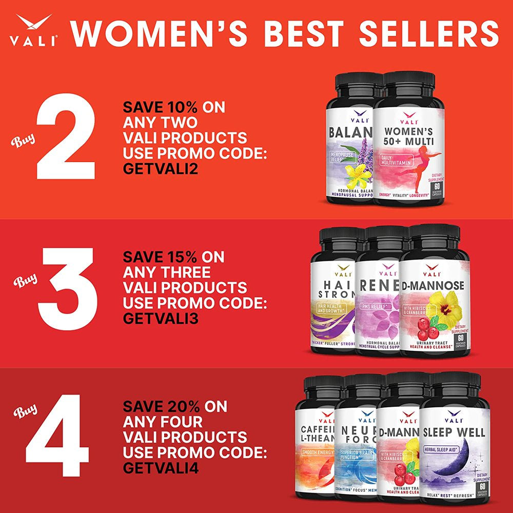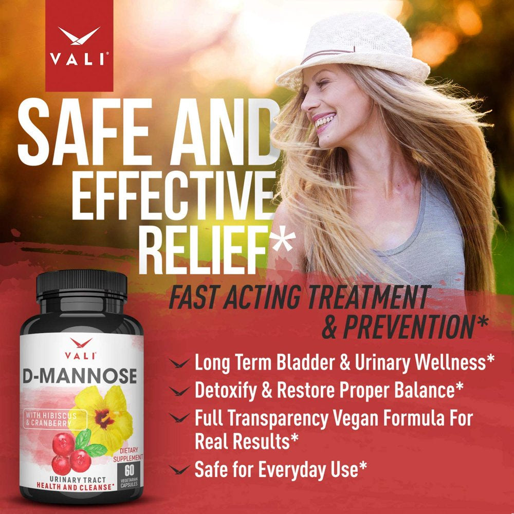 VALI D-Mannose is a urinary tract health and cleanse supplement. Made with organic cranberry and hibiscus flower, it’s a triple action urinary formula to help flush away toxins that cause discomfort in the urinary tract. Each serving contains 1,000mg of D-Mannose to cleanse and restore the urinary tract with a potent anti-adherence flush. Fast acting, made with organic trusted ingredients, acts immediately to clean impurities in the bladder and urinary system fast. Easily get high doses of natural cranberry without drinking juice. Safe to take daily for maintenance or when you need it. For women and men. Zero calories, vegan, Non-GMO ingredients, keto friendly, proudly made in the USA in an eco-friendly facility under the latest cGMP guidelines.
