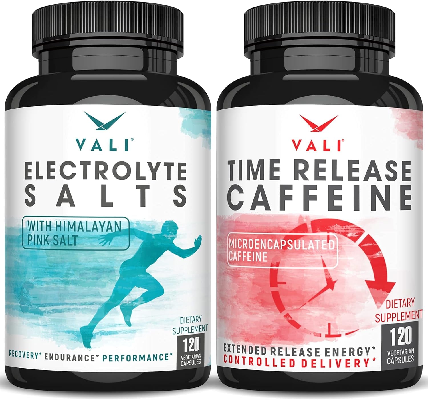 VALI Electrolyte Salts Time Release Caffeine Bundle - Rapid Oral Rehydration for Hydration Nutrition & Fluid Recovery and Smart Slow Release Caffeine for Extended Energy, Focus & Alertness