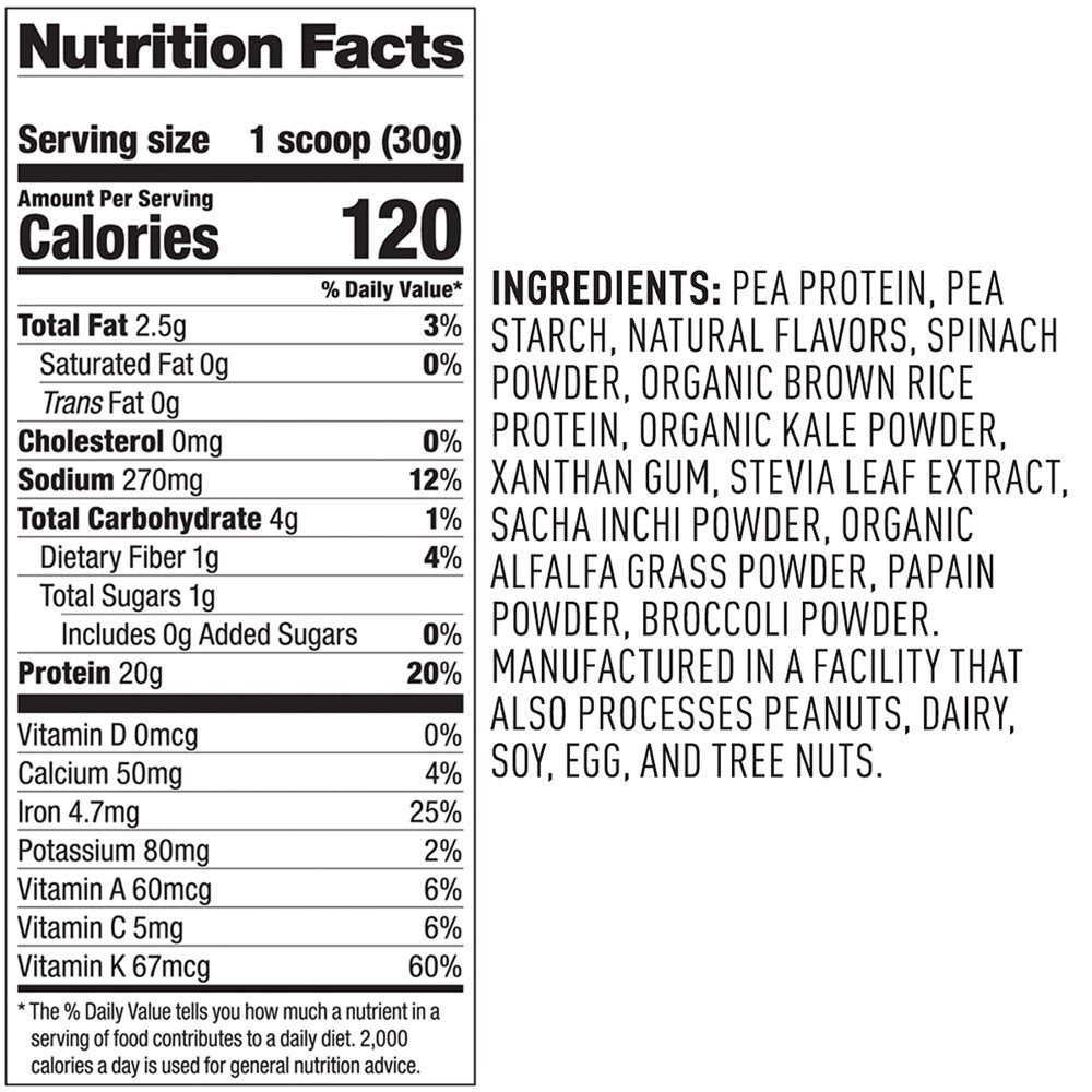 Looking for more than just protein powder? Deliciously smooth, Vega Protein & Greens helps add effortless nutrition with 20 grams of vegetable protein plus real, plant-based food ingredients like spinach and kale. Vega chocolate protein powder contains all nine essential amino acids from vegan pea protein, brown rice protein and sacha inchi protein. Start your day with plants by shaking up one serving of Vega Protein & Greens with 1 ½ cups of of ice water or blend a scoop into your favorite smoothie recipe for a smooth, subtly sweet taste. Vega Protein & Greens is non-GMO Project Verified, vegetarian, vegan certified, low-glycemic, gluten-free, and without dairy or soy ingredients. Try Vega Protein & Greens in delicious Vanilla, Chocolate, Salted Caramel, Berry, Coconut Almond, Tropical or Plain Unsweetened Stevia-Free. This product is keto-friendly. We recommend adding coconut oil to your favorite smoothie or shake for a little extra fat. Not a medical food.